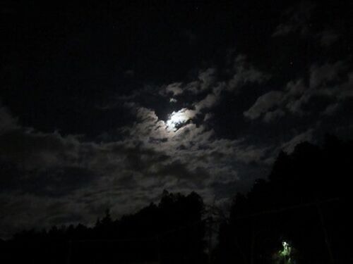 昼間は雨のち曇り。夜はどうかなぁ…?遅い時間に晴れたらラッキーだなぁ…。くらいに思っていました。 ところが、18h過ぎに買い物に行こうとしたら…晴れ間が!!!超低空ですが、月が見えています。しかも、すぐに曇りそうな雲の具合。でも透明度は悪くなくて…